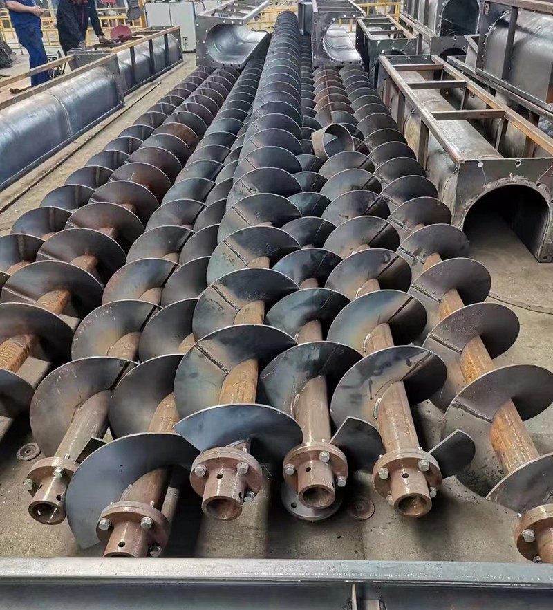 螺旋輸送機(jī)的螺旋葉片有實(shí)體螺旋面、帶式螺旋面和葉片螺旋面三種形式。